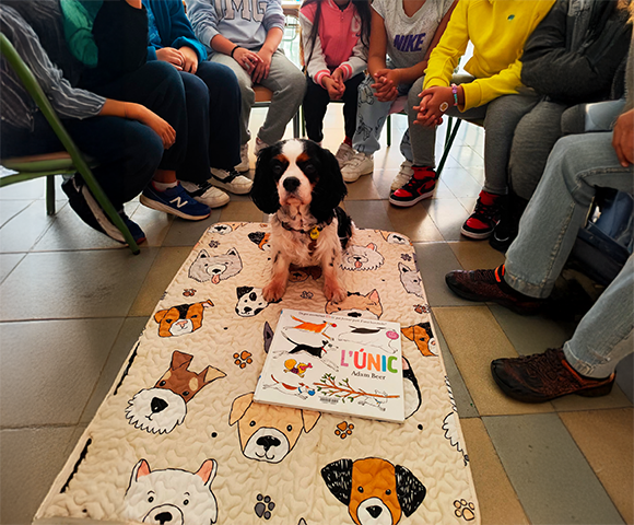 Fomento de la lectura en un entorno relajado, donde los perros actúan como facilitadores de confianza y motivación.